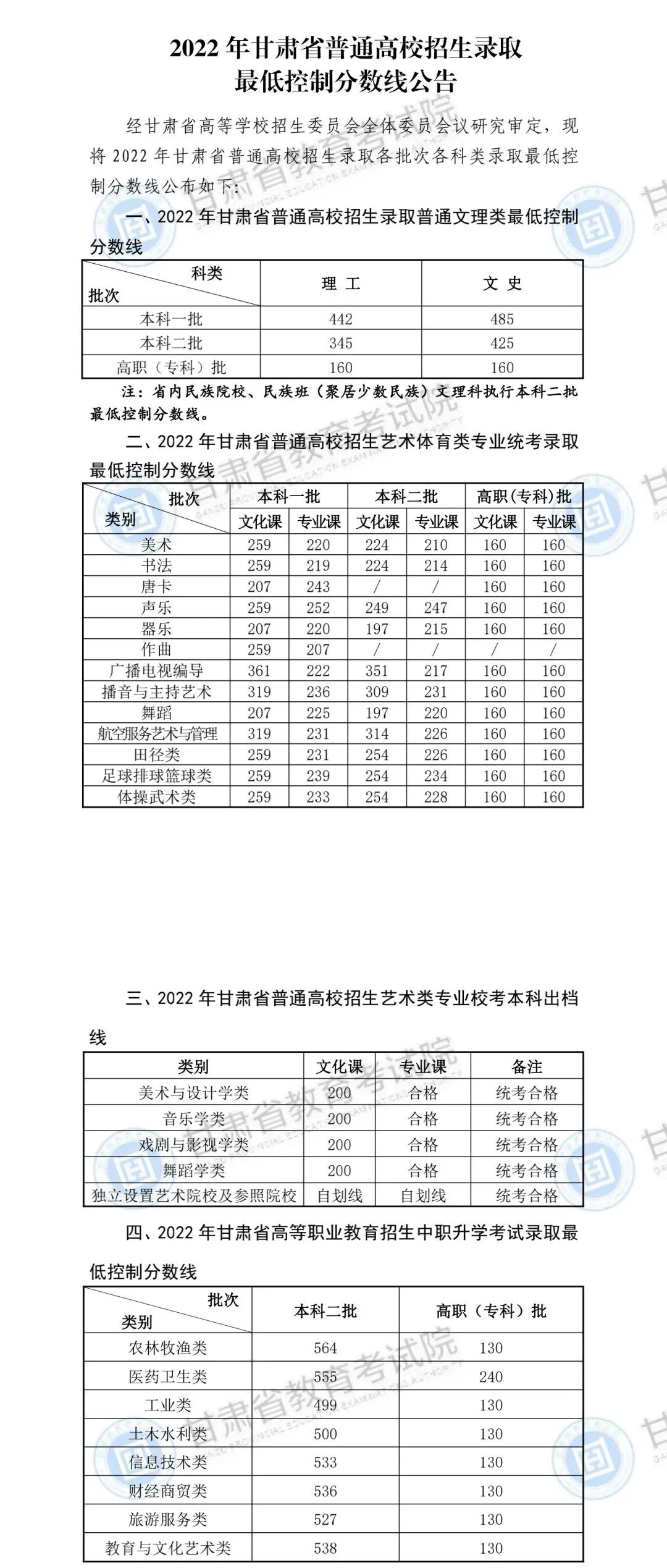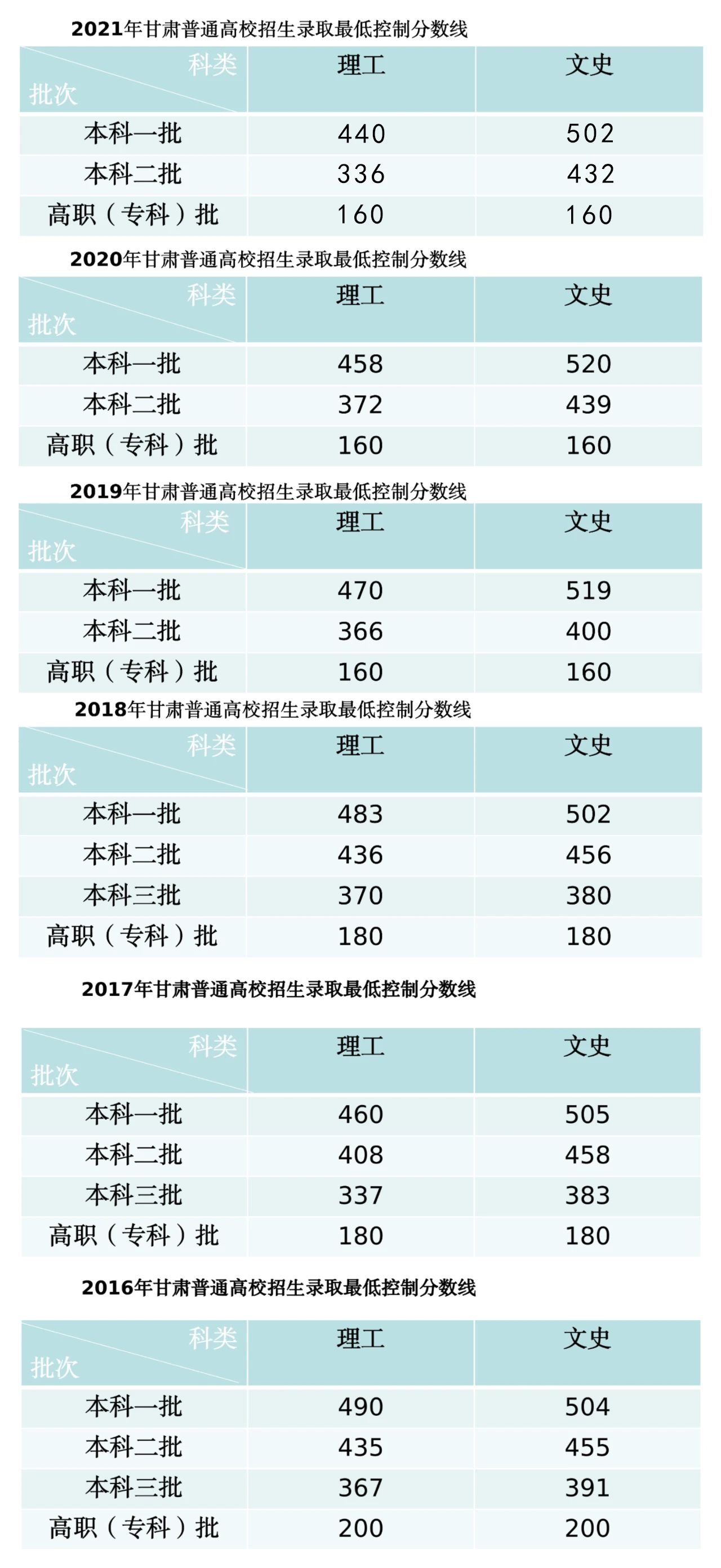 甘肅省歷年高考分?jǐn)?shù)線(xiàn)(2022年-2016年)