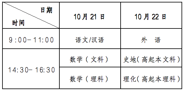 1.高中起點(diǎn)升本、專科考試時(shí)間表