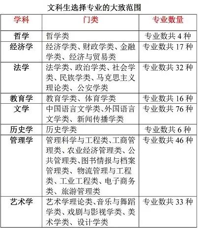 從整體上來(lái)看,文科生可選擇的專業(yè)主要集中在哲學(xué)、經(jīng)濟(jì)學(xué)、法學(xué)、教育學(xué)、文學(xué)、歷史學(xué)、管理學(xué)、藝術(shù)學(xué)等8個(gè)學(xué)科門類。