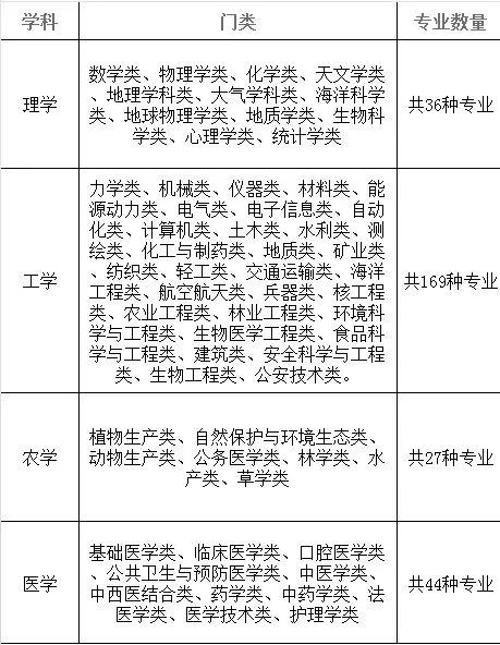 下面表格簡(jiǎn)單列出理科可以選擇的四個(gè)門類專業(yè)的大致范圍。