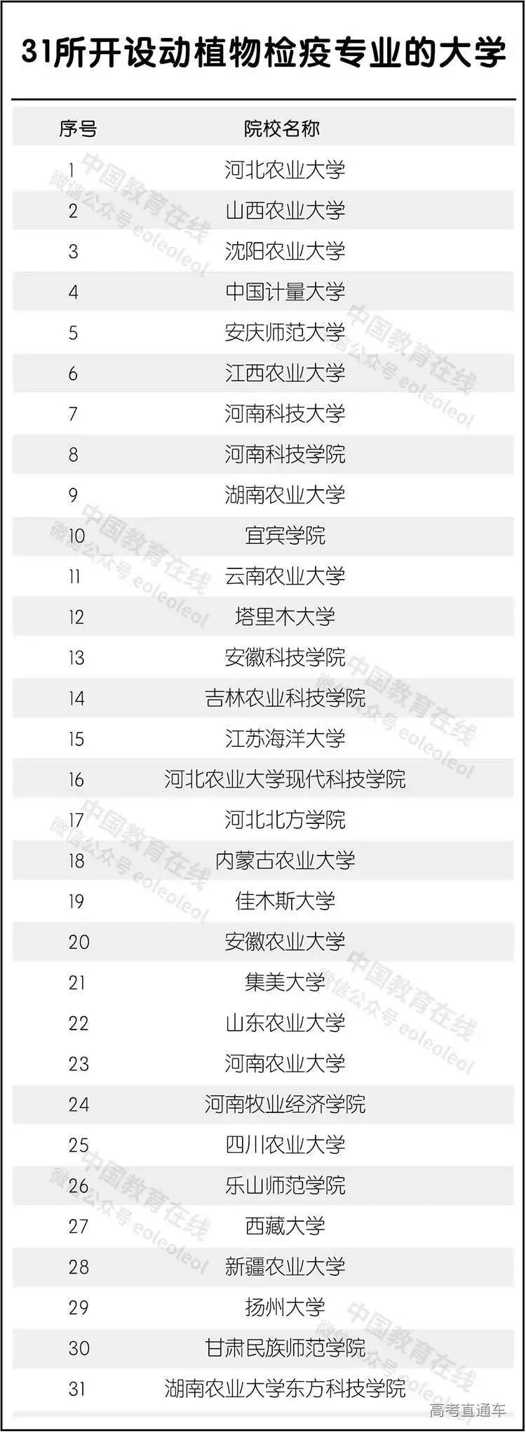 1月25日,教育部對“關于新農科將動植物檢疫專業(yè)發(fā)展為兩個新專業(yè)的建議”答復中表示,教育部高度重視動植物檢疫領域的高水平人才培養(yǎng),2019年支持全國31所高校開設了動植物檢疫本科專業(yè),畢業(yè)生達到1442人,在校生達到5679人,為國家生物安全風險防控工作輸送了大量的高素質專業(yè)性人才,在國內外貿易、全球一體化進程中保障生物安全方面發(fā)揮了重要的作用。