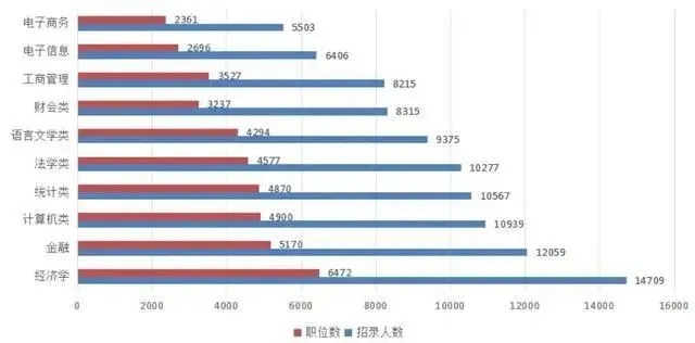 招考人數(shù)最多的有經(jīng)濟學(xué)、金融、計算機類、統(tǒng)計類、法學(xué)類、語言類、財會類、工商管理、電子信息、電子商務(wù)等相關(guān)專業(yè),這些專業(yè)也是近年來的公務(wù)員熱門專業(yè),如果大學(xué)報考這些專業(yè)的話能選擇的崗位更多。