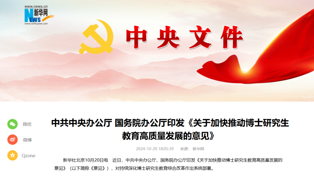 據(jù)新華社消息,近日,中共中央辦公廳、國務(wù)院辦公廳印發(fā)《關(guān)于加快推動(dòng)博士研究生教育高質(zhì)量發(fā)展的意見》(以下簡稱《意見》),對(duì)持續(xù)深化博士研究生教育綜合改革作出系統(tǒng)部署。