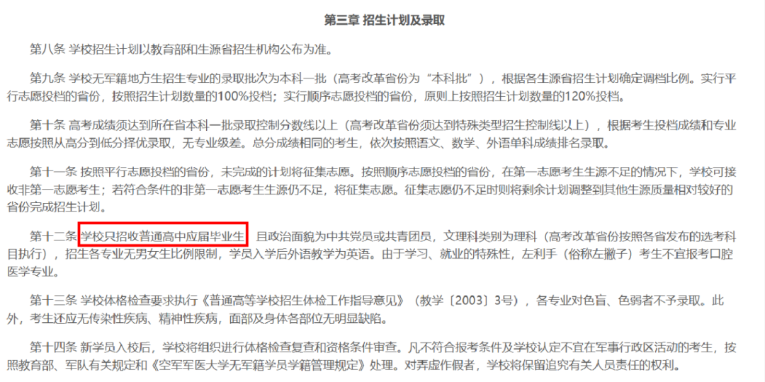 3、從招生簡章來看:查看近年來各院校強(qiáng)基計劃招生簡章,其中并未有明確要求報考學(xué)生必須為應(yīng)屆生。