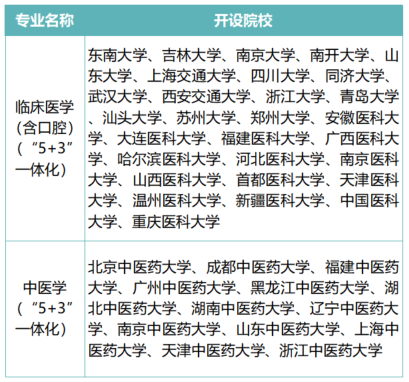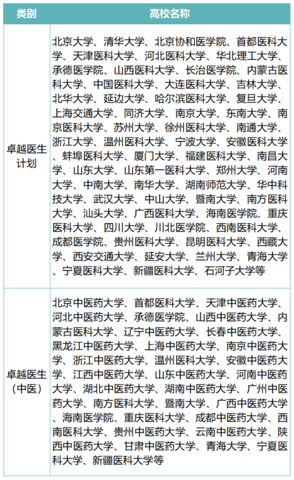 卓越醫(yī)生教育培養(yǎng)計劃試點高校名單(部分)
