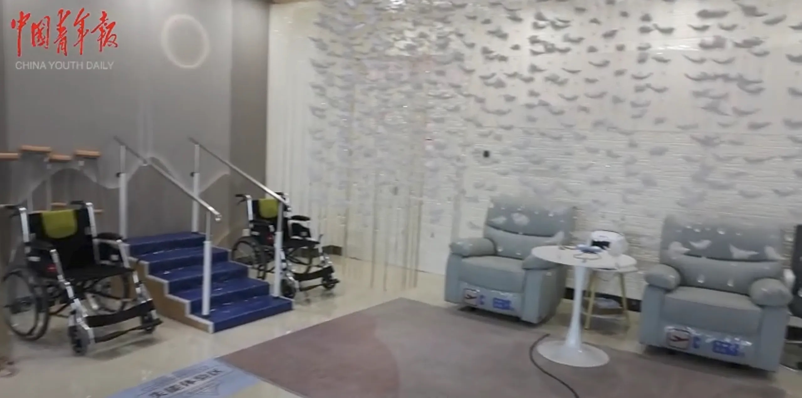 為此,該校生命文化學院創(chuàng)建了全國高校首個生死體驗中心,其中有一間特殊的實訓室——生死體驗廳。