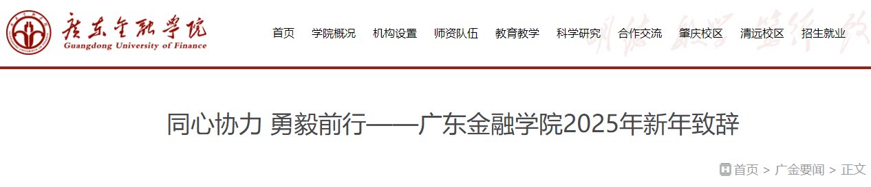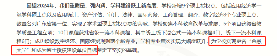 近日,廣東金融學(xué)院在2025年新年致辭中提到:學(xué)校學(xué)科專業(yè)層次實(shí)現(xiàn)大幅度躍升,為學(xué)校實(shí)現(xiàn)更名“金融大學(xué)”和成為博士授權(quán)建設(shè)單位目標(biāo)奠定了堅(jiān)實(shí)的基礎(chǔ)。