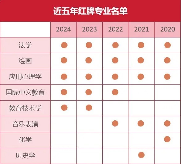 在近5年被列為“紅牌”專業(yè)次數(shù)達(dá)到4次及以上的專業(yè),值得考生關(guān)注。