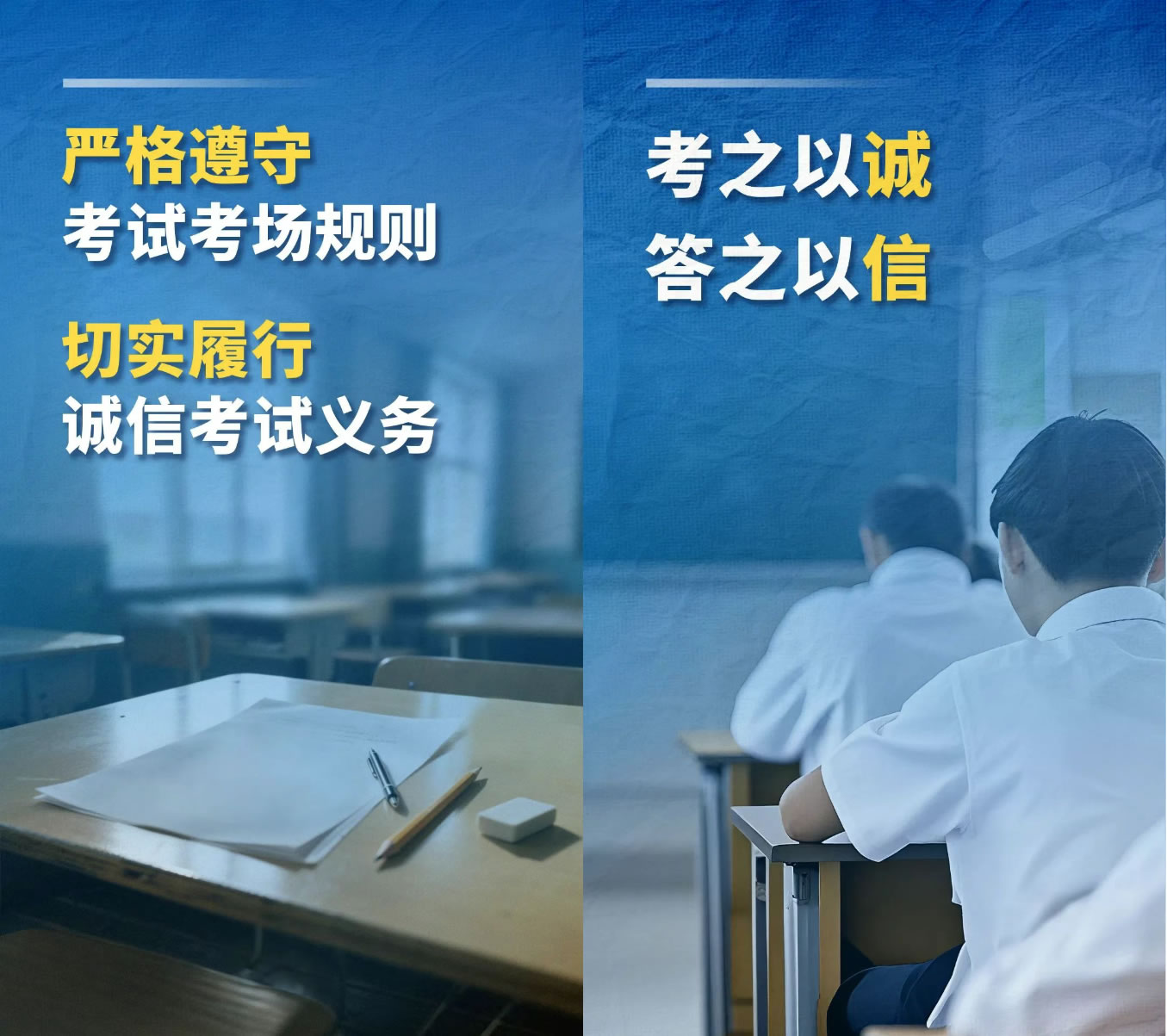 三要誠(chéng)信參加考試,不要攜帶手機(jī)、智能手表等各類無線通訊工具及其他違禁物品進(jìn)入考點(diǎn)(考場(chǎng)),如有攜帶需按考點(diǎn)要求統(tǒng)一存放至指定保管處,嚴(yán)格遵守考場(chǎng)紀(jì)律。