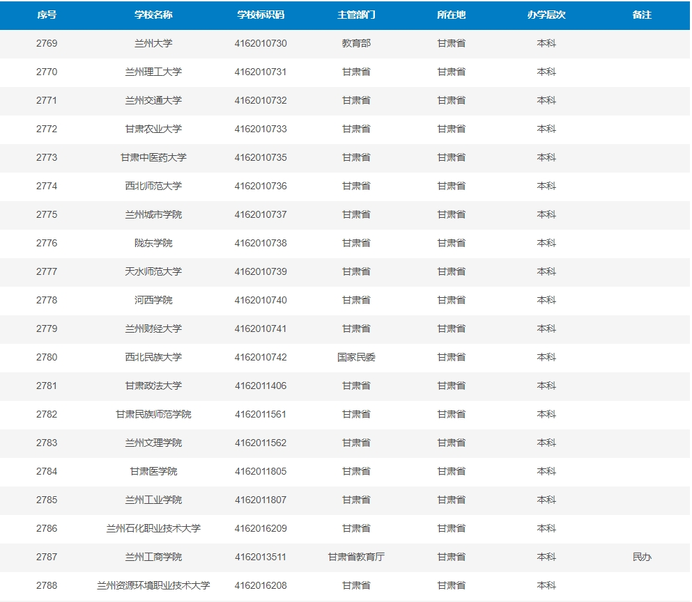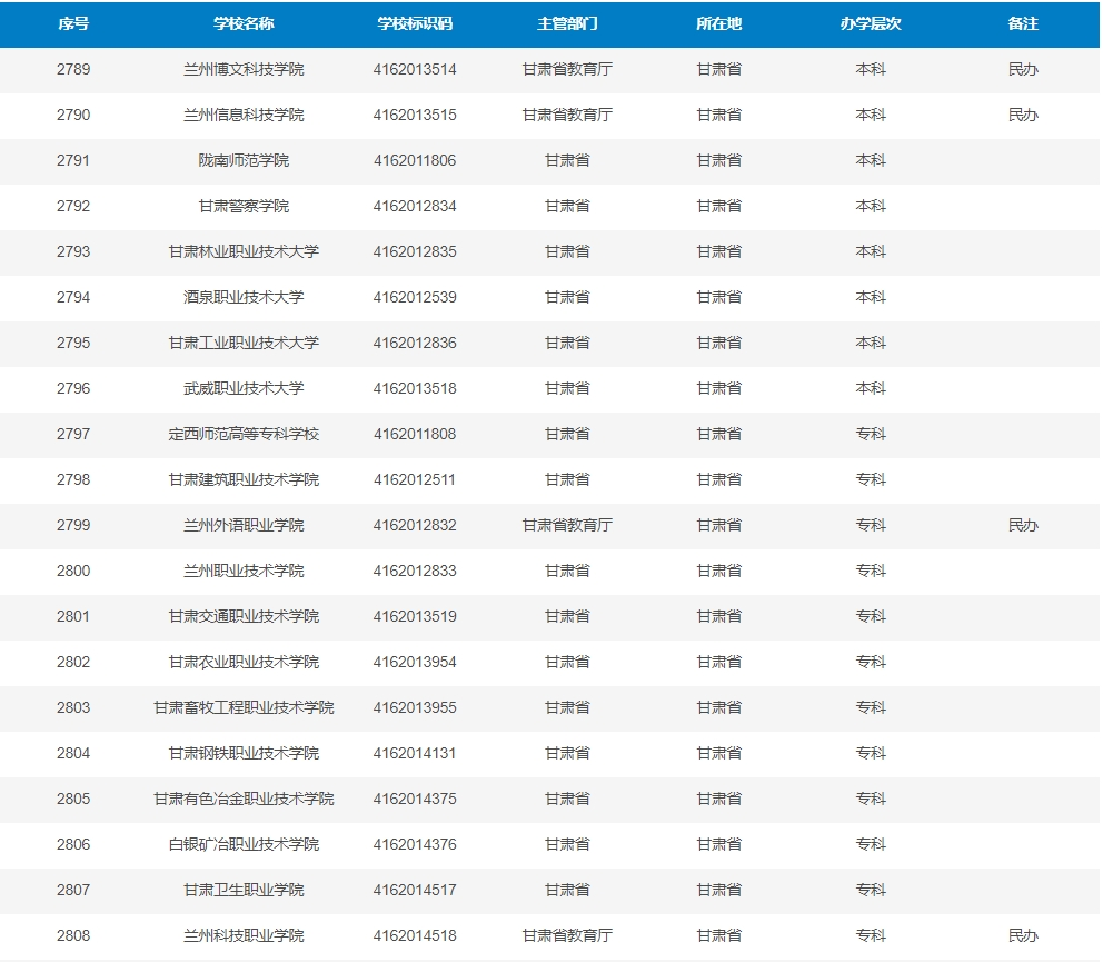 (甘肅4所)