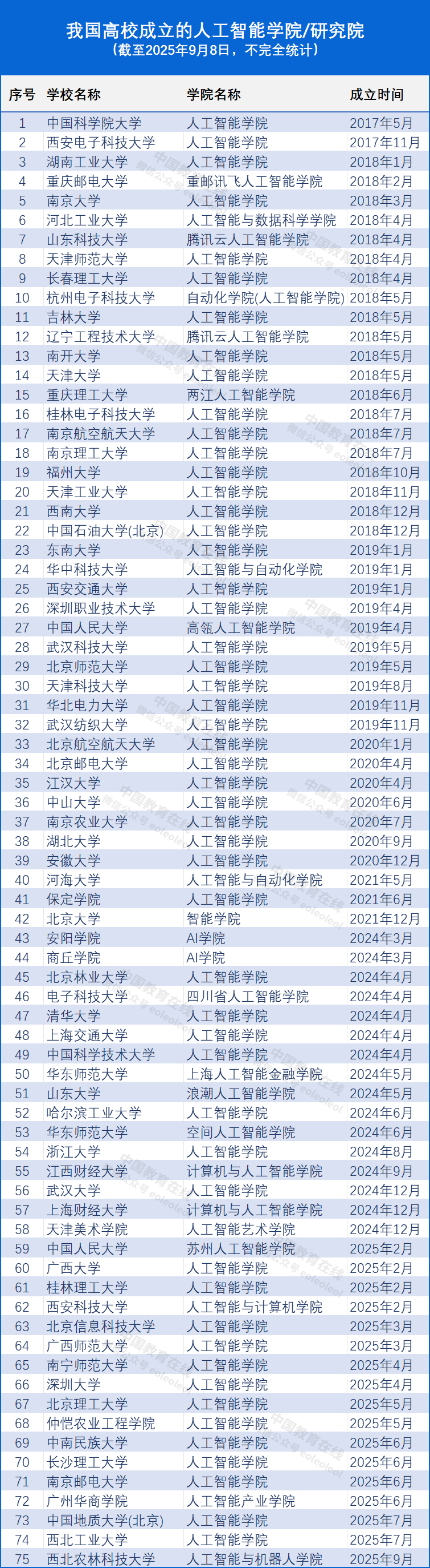 據(jù)不完全統(tǒng)計,截至目前,我國已有超70所高校成立了人工智能學(xué)院。