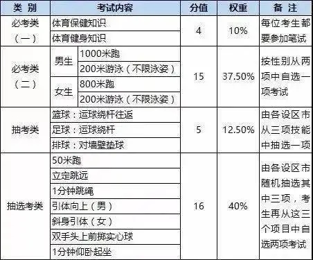 教育部體育衛(wèi)生與藝術(shù)教育司司長王登峰表示,目前全國已經(jīng)有4個省開展美育中考計分,同時還有6個省、12個地市已經(jīng)開始了中考美育的計分,分值在10分到40分之間,云南省從今年開始要增加到40分。杭州中考最明顯的變化就是2021年中考分配生政策將代替保送生,所有初中畢業(yè)生均需要參加中考。1.所有初中畢業(yè)班學(xué)生均需參加學(xué)業(yè)水平考試,從明年起名額分配生(原保送生)也將全部參加中考。2.所有學(xué)科都要考。初中學(xué)業(yè)水平考試中的語文、數(shù)學(xué)、英語、科學(xué)、社會和體育與健康等六門為統(tǒng)一考試科目,成績納入錄取計分。音樂、美術(shù)、綜合實踐活動等學(xué)科作為考核科目。成績計入學(xué)生綜合素質(zhì)評價。3.名額分配生比例從50%增加到不低于60%,優(yōu)質(zhì)普高名額分配生(原保送生)比例從2021年(2018級初一年級)起由50%提高到不低于60%。從2021年起,寧波市科學(xué)實驗操作測試成績將納入中考總分,本次測試于12月26日、27日正式開考。滿分10分,計入中考科學(xué)學(xué)科總分。11月28、29日將舉行模擬考,考試范圍為測量物質(zhì)的密度等10個實驗。今年暑假,山西省長治市將把裸眼視力和體重考核結(jié)果納入中考總成績。長治市中考將從2022年開始,增設(shè)學(xué)生綜合素質(zhì)評價50分,其中身體素質(zhì)占20分,這其中,作為結(jié)果性評價學(xué)生體重、裸眼視力各占5分。有網(wǎng)友質(zhì)疑此舉“涉嫌基因與經(jīng)濟(jì)雙重歧視”,也有人認(rèn)為這是一個好的導(dǎo)向。面對公眾質(zhì)疑,長治市教育局相關(guān)負(fù)責(zé)人解釋說:“考生最后得分差距并不大,主要是想引導(dǎo)青少年自覺加強(qiáng)體育鍛煉、保護(hù)視力,提高身體素質(zhì)?!?/section>福建2021年體育中考實施方案公布,方案明確了體育筆試的形式和內(nèi)容,給出了各個項目的評分標(biāo)準(zhǔn),同時明確抽考和抽選考科目,在初三上學(xué)期11月抽取。2021年體育中考總分為40分,其中體育與健康基本知識(筆試)占 4 分,身體素質(zhì)與運動技能占 36 分。在筆試方面, 體育筆試與《道德與法治》科目同場合卷進(jìn)行,單獨一個模塊,考試時間合計為100 分鐘,即原《道德與法治》考試時間為 90 分鐘, 增加《體育與健康基本知識》考試時間 10 分鐘。在題型題量:共設(shè) 16 小題,每小題 0.25 分,全部為單項選擇題。抽考類、抽選考類由省教育廳委托各設(shè)區(qū)市教育局隨機(jī)抽選,并于當(dāng)學(xué)年(上學(xué)期)11 月份抽取并向考生公布初中畢業(yè)生體育考試項目。1. 中考總分值從630分增加到750分
