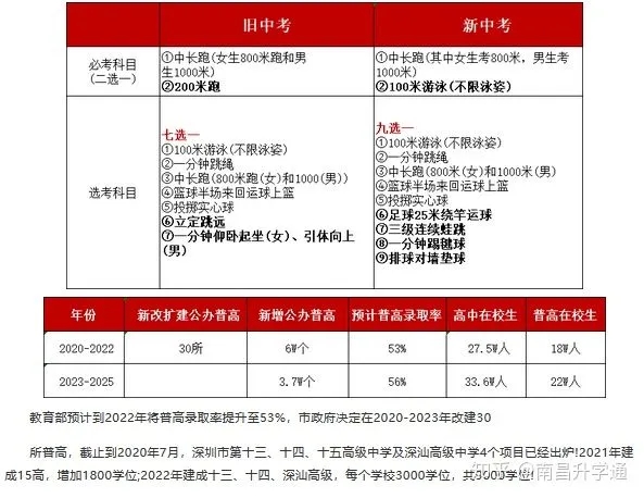 各學(xué)科分值分配為:語文、數(shù)學(xué)、英語、體育各100分;物理50分;政治、歷史、生物學(xué)各40分;化學(xué)、地理各30分;音樂、美術(shù)、勞技各20分,信息10分。這一改革從2020年入學(xué)的七年級學(xué)生開始實施。一經(jīng)發(fā)布后,迅速引發(fā)社會廣泛關(guān)注。其中,爭議點主要在于:“體育分值上升至與語數(shù)英并列的100分,是否合理?”“物理化學(xué)分值偏低,會不會導(dǎo)致學(xué)生不重視?”等。有家長認(rèn)為,把體育提升到與語數(shù)英同等地位,對于天生體質(zhì)不好的學(xué)生來說是個噩夢,“語數(shù)英努力還可以學(xué)好,身體素質(zhì)不行,不是兩三年就可以練好”。也有家長提出,科學(xué)是第一生產(chǎn)力,想要科技進(jìn)步,就要打好物理化學(xué)基礎(chǔ)。物理化學(xué)分值偏低,會導(dǎo)致學(xué)生不夠重視,影響后面的學(xué)習(xí)。1.計分科目由七科變?yōu)榘丝?,增加道?/section>道法考試十分靈活,除了書本的知識點之外,同學(xué)們平時要多看新聞,關(guān)注時政熱點。英語的筆試時長減少了10分鐘,這對應(yīng)著筆試試卷的總分由85變?yōu)?5,但是題量會如何變化官網(wǎng)暫未公布。體育考試仍然采用“1+1”方式,即1個必考科目加1個選考科目(必考科目與選考科目不能重復(fù))。必考科目和選考科目所占的比重各為50%。從2021年開始,長沙市將取消集團(tuán)化辦學(xué)的“直升生”政策,所有初中畢業(yè)生都要以中考成績?yōu)閼{據(jù)參加高中階段招生錄取。總結(jié)2021年全國各地中考改革的趨勢,未來的新中考改革方向有以下突出要點:1.考查科目范圍擴(kuò)大,考核內(nèi)容多樣化在國家公布的改革方案里,明確要探索將藝術(shù)類科目納入中考改革試點。近期,有些地區(qū)還將物理、化學(xué)和生物中的實驗操作納入學(xué)業(yè)水平考試范圍。中考考察科目范圍在不斷擴(kuò)大。所以,未來各科都要投入精力均衡發(fā)展了!中考改革方案中,有一個重要的趨勢:綜合素質(zhì)評價更加細(xì)化。這一評分在一些省市的高中錄取時直接占據(jù)了總分的30分,不僅僅是以往軟性的參考,而是“硬分?jǐn)?shù)”。云南的中考改革中,體育分?jǐn)?shù)提高到了100分,全國多地的中考改革也將體育分值提高。所以,務(wù)必要在學(xué)習(xí)之余重視身體素質(zhì)。聽說杭州小區(qū)里媽媽已經(jīng)給孩子下了硬指標(biāo),一天體育鍛煉至少一小時……