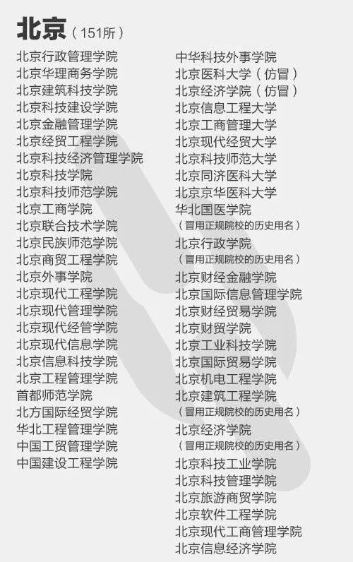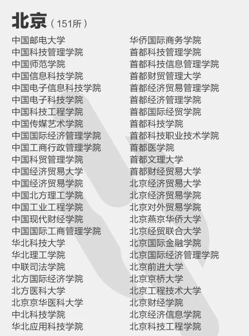 根據(jù)教育部公布名單顯示,截至2020年6月30日,全國高等學(xué)校共計(jì)3005所,其中:普通高等學(xué)校2740所,含本科院校1258所、高職(專科)院校1482所;成人高等學(xué)校265所。本名單未包含港澳臺(tái)地區(qū)高等學(xué)校。這些學(xué)校都屬于正規(guī)大學(xué),由國家承認(rèn)其性質(zhì)。具體可以通過以下方式查詢:1. 教育部門戶網(wǎng)站和官方微信公眾號(hào)“微言教育”,考生和家長可以通過登錄教育部官網(wǎng)或在官微“微言教育”“高校名單”欄目進(jìn)行查詢核實(shí)。2. 中國教育在線門戶網(wǎng)站“正規(guī)大學(xué)名單”查詢識(shí)別下方二維碼即可查看3005所正規(guī)大學(xué)名單!