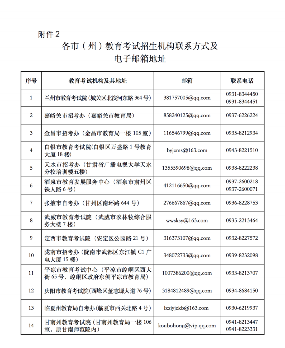 2.各市(州)教育考試招生機(jī)構(gòu)聯(lián)系方式及電子郵箱地址