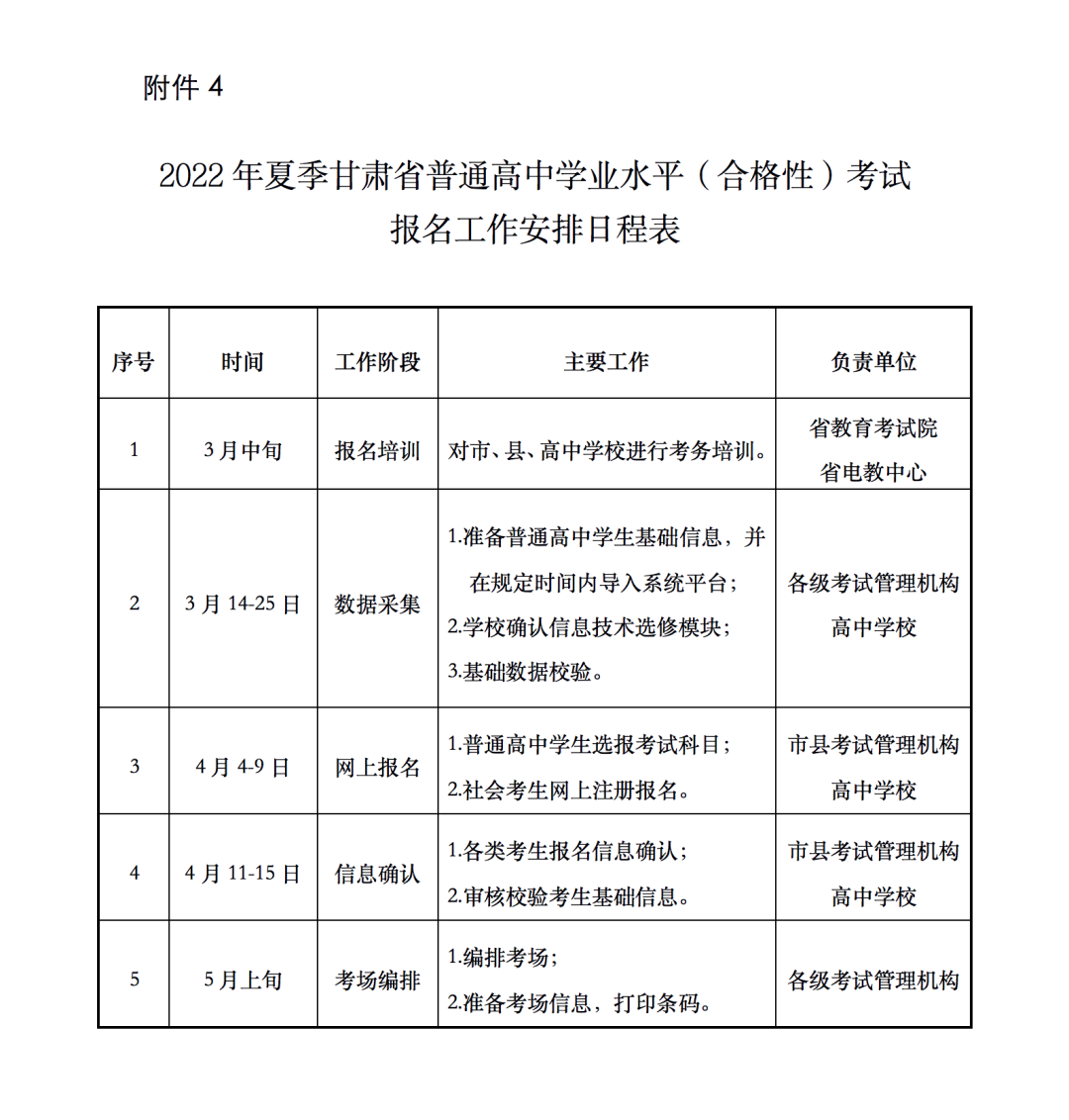4.2022年夏季甘肅省普通高中學(xué)業(yè)水平(合格性)考試報(bào)名安排日程表