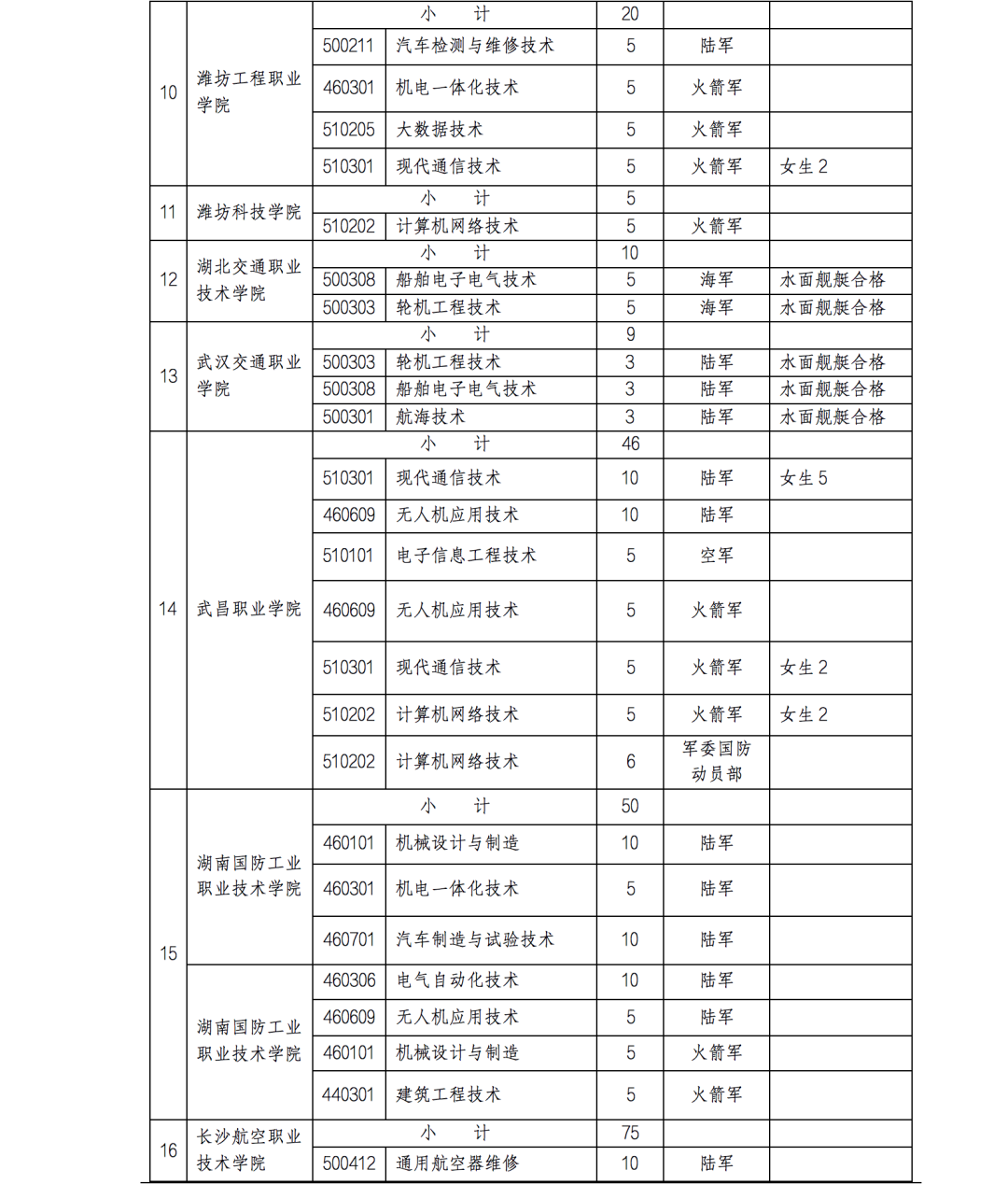 根據(jù)教育部、軍委政治工作部、軍委國(guó)防動(dòng)員部《關(guān)于做好2022年招收定向培養(yǎng)軍士工作的通知》(軍政〔2022〕397號(hào))要求,依據(jù)《軍士招收工作暫行規(guī)定》,為深入貫徹軍民融合發(fā)展戰(zhàn)略,著力培養(yǎng)軍隊(duì)建設(shè)需要的高素質(zhì)軍士人才,現(xiàn)就2022年依托地方普通高等學(xué)校招收定向培養(yǎng)軍士工作有關(guān)事宜公告如下: