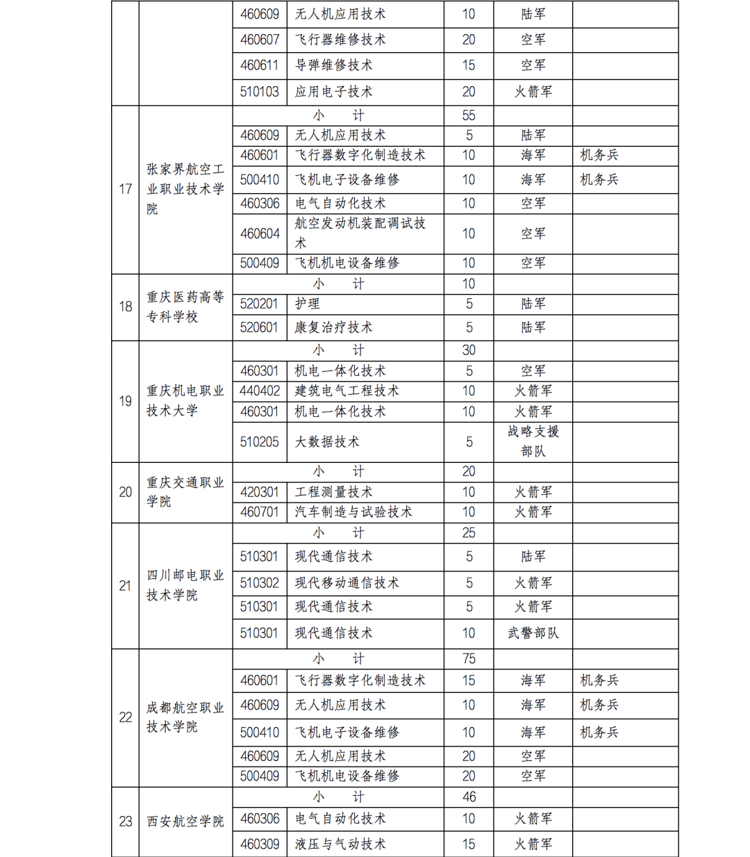 全國(guó)29所地方高職院校在我省招收定向培養(yǎng)軍士1303人(含女軍士17人,具體見附件1)。我省2022年定向培養(yǎng)軍士招生計(jì)劃在《2022年甘肅省普通高等學(xué)校招生專業(yè)目錄》中公布,并單獨(dú)編制定向培養(yǎng)軍士生院校代碼,供考生填報(bào)志愿時(shí)使用。
