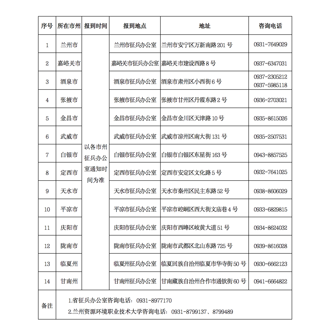 2.2022年甘肅省報(bào)考定向培養(yǎng)軍士考生報(bào)到地點(diǎn)安排表