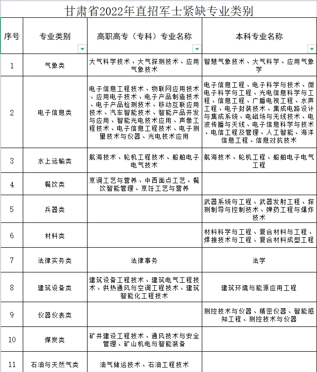 附件:甘肅省2022年直招軍士緊缺專業(yè)類別