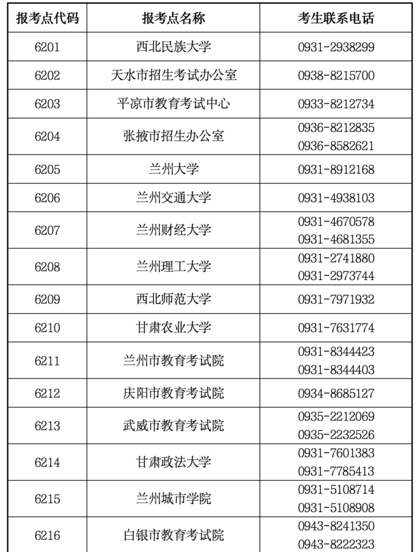 甘肅省各報(bào)考點(diǎn)聯(lián)系電話
