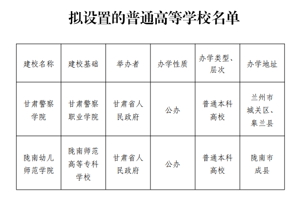 正在公示!甘肅擬設(shè)置兩所普通本科高校