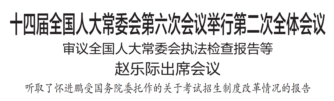 據(jù)新華社北京10月21日電 十四屆全國人大常委會第六次會議21日上午在北京人民大會堂舉行第二次全體會議。趙樂際委員長出席。