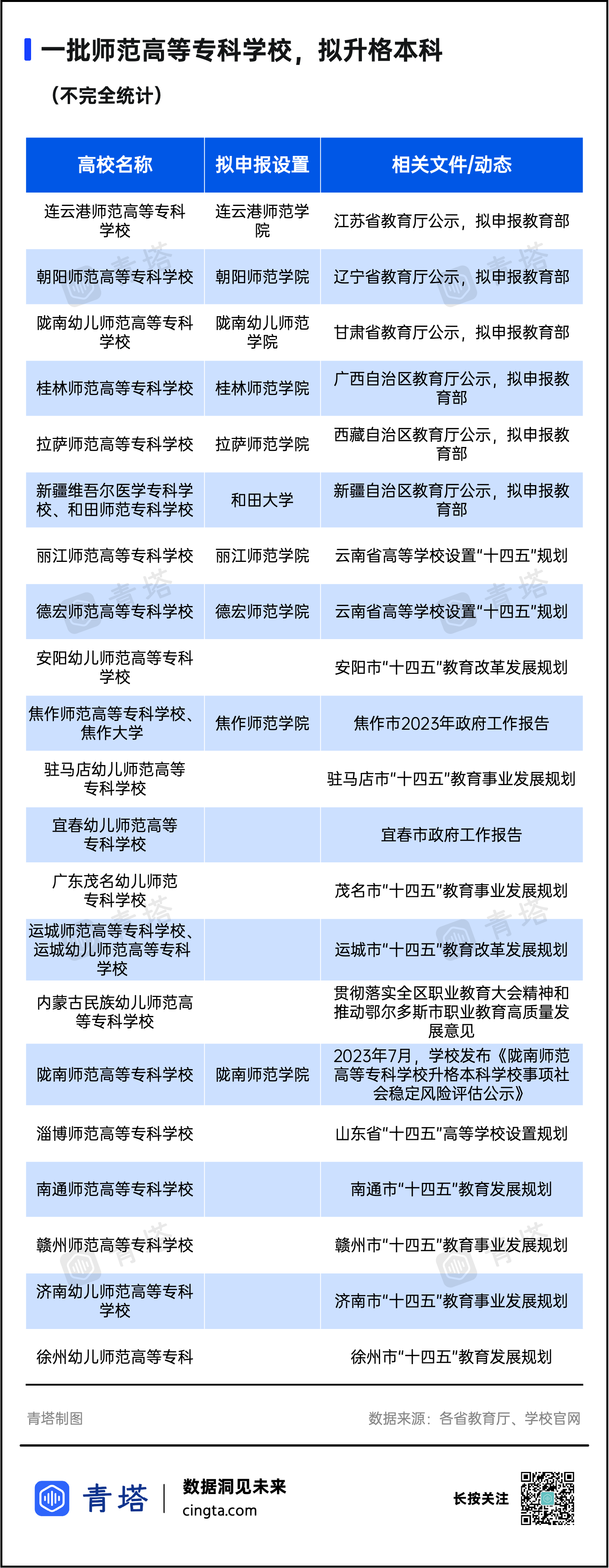教育部也曾在《關于“十四五”時期高等學校設置工作的意見》中明確,支持少量師范類高等??茖W校升格為普通本科高校。