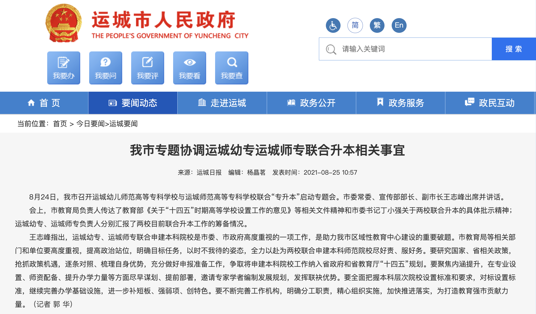 2021年8月,山西運城市則曾召開運城幼兒師范高等專科學校與運城師范高等??茖W校聯(lián)合“專升本”啟動專題會。運城市委副市長王志峰指出,運城幼專、運城師專聯(lián)合申建本科院校是市委、市政府高度重視的一項工作,是助力運城市區(qū)域性教育中心建設的重要破題。