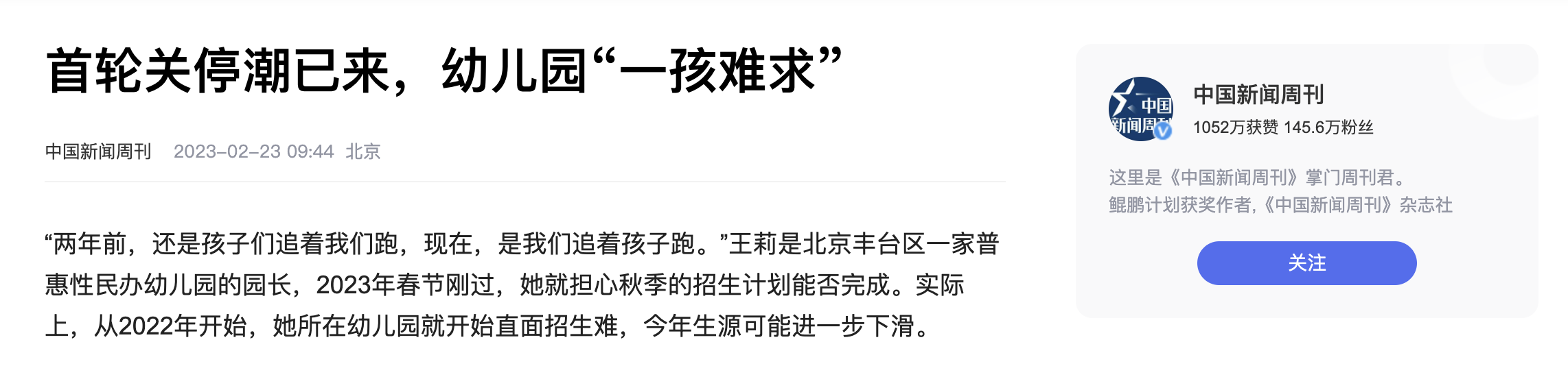 出生人口減少的寒氣,已悄然侵襲幼兒園。2022年,我國幼兒園數(shù)量減少5000多所,這是近15年來全國幼兒園數(shù)量首次負增長。