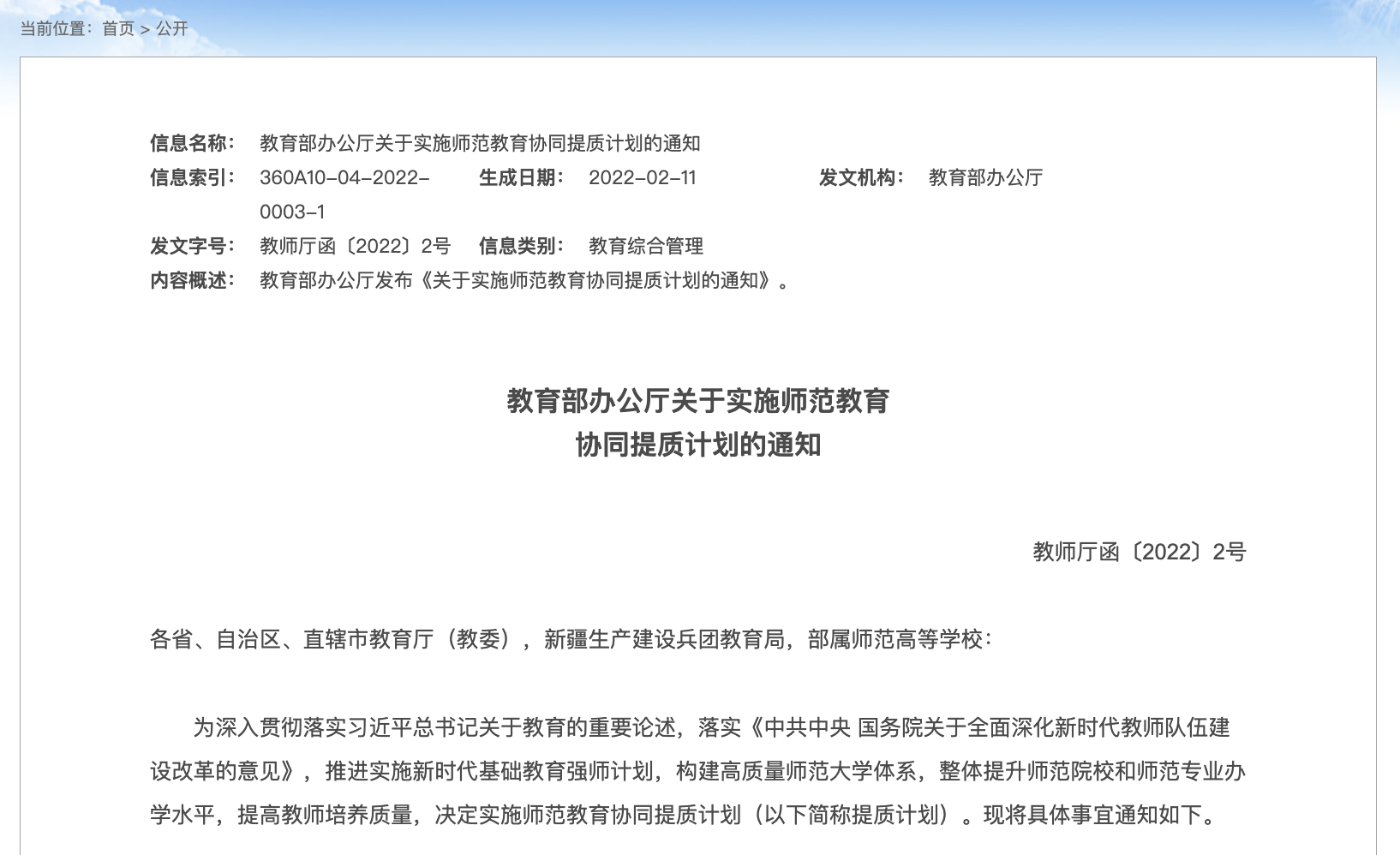 2021年5月,國家發(fā)改委在《“十四五”時期教育強國推進工程實施方案》上明確提出‘“十四五”期間將重點支持50所左右的優(yōu)質師范院校建設,每所高校支持中央預算內投資1億元。