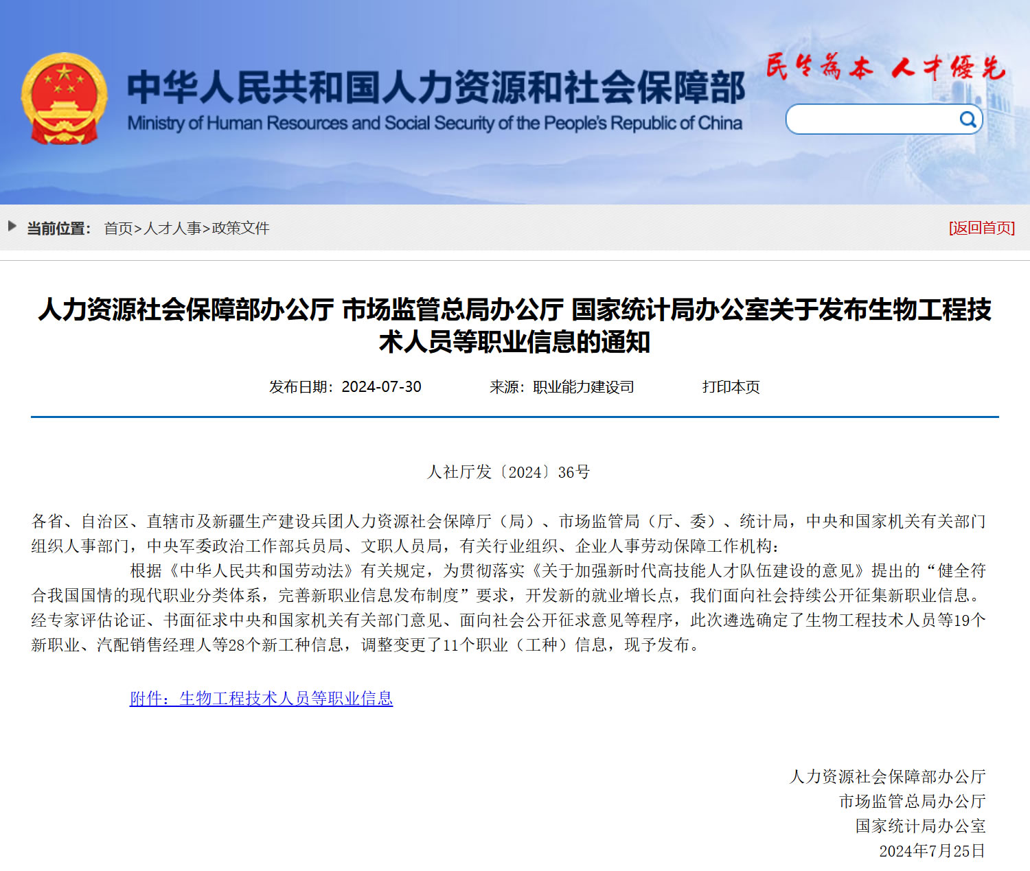 根據(jù)人社部2024年7月30日消息,人力資源和社會(huì)保障部會(huì)同國家市場監(jiān)督管理總局、國家統(tǒng)計(jì)局正式發(fā)布了關(guān)于發(fā)布生物工程技術(shù)人員等職業(yè)信息的通知,宣布網(wǎng)絡(luò)主播成為國家新職業(yè)之一。