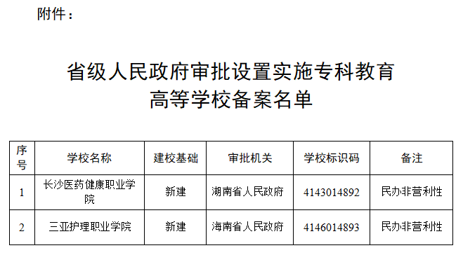 根據(jù)《中華人民共和國高等教育法》《普通高等學(xué)校設(shè)置暫行條例》等有關(guān)法律法規(guī)和政策文件的規(guī)定,現(xiàn)將省級人民政府審批設(shè)置的專科層次高等學(xué)校備案名單予以公布。