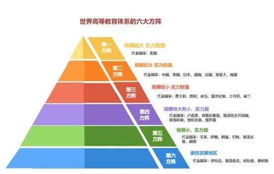 國(guó)際版“高等教育強(qiáng)國(guó)指數(shù)”顯示,世界高等教育體系根據(jù)發(fā)展階段可分為六大方陣,美國(guó)以絕對(duì)實(shí)力領(lǐng)跑,中國(guó)、英國(guó)、日本、德國(guó)等國(guó)家為第二方陣的代表國(guó)家,較去年發(fā)布的教育強(qiáng)國(guó)指數(shù)結(jié)果相比,英國(guó)超過(guò)日本成為排名第3國(guó)家。中國(guó)仍領(lǐng)跑第二方陣并縮小與美國(guó)的差距,從去年的58分提升到65分。