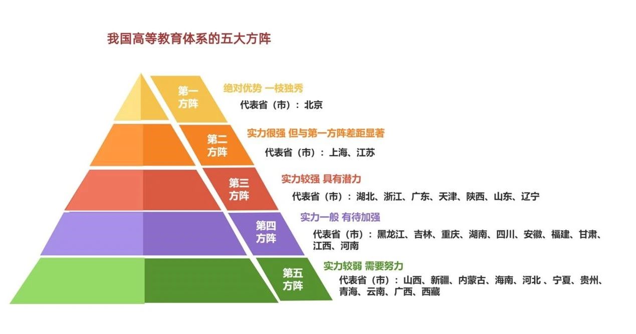 省域版“高等教育強(qiáng)國(guó)指數(shù)”顯示,北京一枝獨(dú)秀,以100分的絕對(duì)優(yōu)勢(shì)領(lǐng)跑全國(guó);上海、江蘇實(shí)力強(qiáng)勁,位居第二方陣,但與北京的差距較為顯著,上海得分為56.49,江蘇得分為51.04;湖北、浙江、廣東、天津、陜西、山東、遼寧等7個(gè)省份位居第三方陣,其中湖北省以35.04分領(lǐng)跑第三方陣,位居全國(guó)第4位;黑龍江、吉林、重慶、湖南、四川、安徽、福建、甘肅、江西、河南等10個(gè)省份實(shí)力一般,位居第四方陣,黑龍江以20.28分領(lǐng)跑第四方陣,位居全國(guó)第11位;山西、新疆等11個(gè)省份的高等教育發(fā)展水平亟待提高,形成第五方陣。