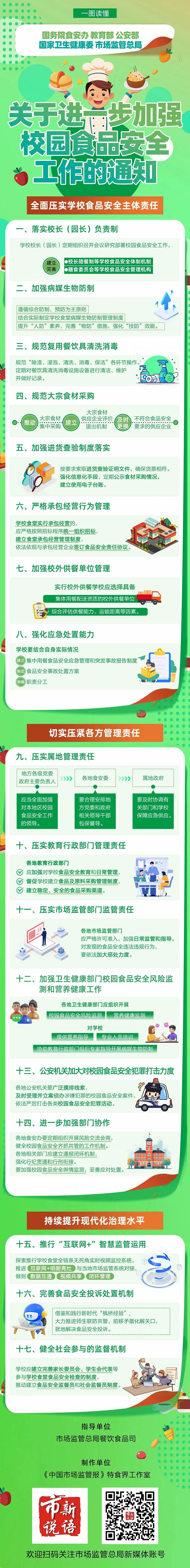 國務(wù)院食安辦近日聯(lián)合教育部、公安部、國家衛(wèi)生健康委、市場監(jiān)管總局印發(fā)《關(guān)于進(jìn)一步加強(qiáng)校園食品安全工作的通知》,部署各地進(jìn)一步健全校園食品安全全鏈條防控風(fēng)險的制度機(jī)制,強(qiáng)化校園食品安全保障。跟教育小微一起去看看——