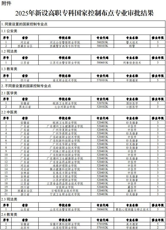 近日,教育部公布2025年高等職業(yè)教育??茖I(yè)設(shè)置備案和審批結(jié)果,