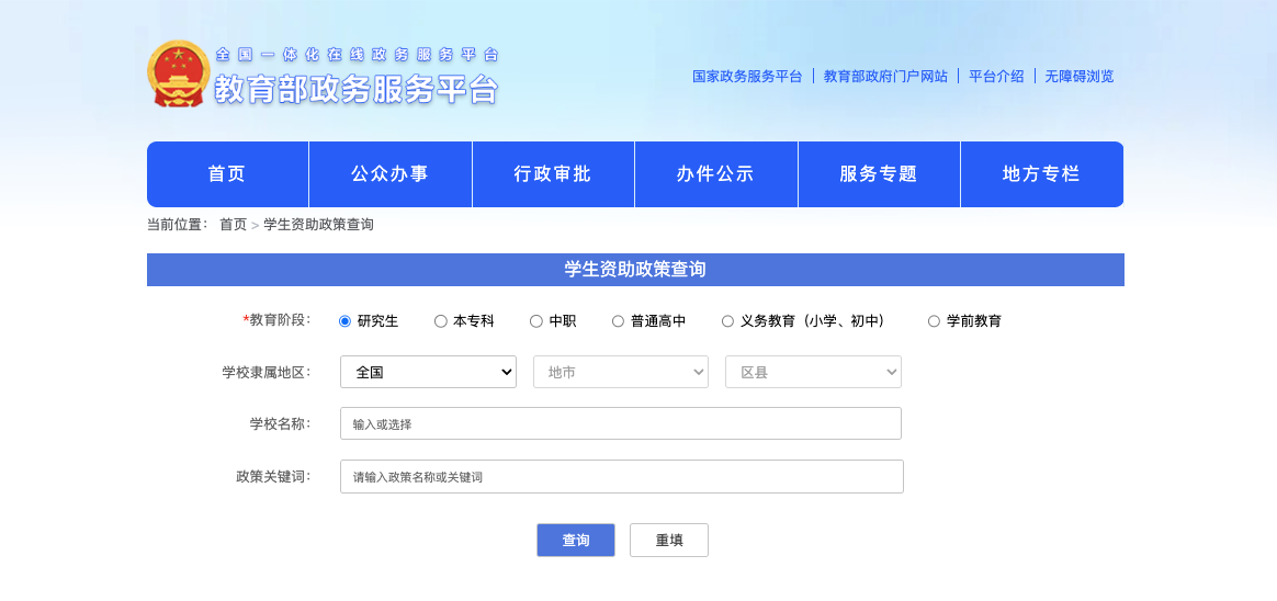2.直接訪問“學(xué)生資助政策查詢服務(wù)”鏈接(https://zwfw.moe.gov.cn/zczx/)。