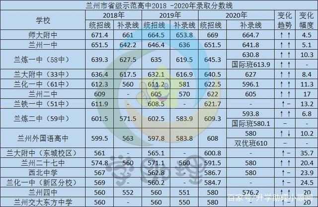 結(jié)合近三年的數(shù)據(jù)來看,總體上來說各普通高中的錄取分數(shù)線從高到低排序變動不是很大,錄取分數(shù)線排名比較穩(wěn)定。但也存在個別普高錄取分數(shù)線有較大變化的情況,例如:蘭大附中東城校區(qū),蘭州七中、蘭化三中和蘭州十中。