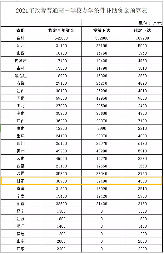 近日,財(cái)政部、教育部聯(lián)合印發(fā)《關(guān)于下達(dá)2021年改善普通高中學(xué)校辦學(xué)條件補(bǔ)助資金預(yù)算的通知》(以下簡稱《通知》),中央財(cái)政日前下達(dá)2021年改善普通高中學(xué)校辦學(xué)條件補(bǔ)助資金預(yù)算10.92億元,此前已提前下達(dá)53.28億元,共計(jì)64.2億元。資金將加大對(duì)困難地區(qū)和薄弱環(huán)節(jié)的支持力度,向因推動(dòng)高考綜合改革而出現(xiàn)辦學(xué)條件困難的地區(qū)傾斜,加快補(bǔ)齊縣域普通高中短板。