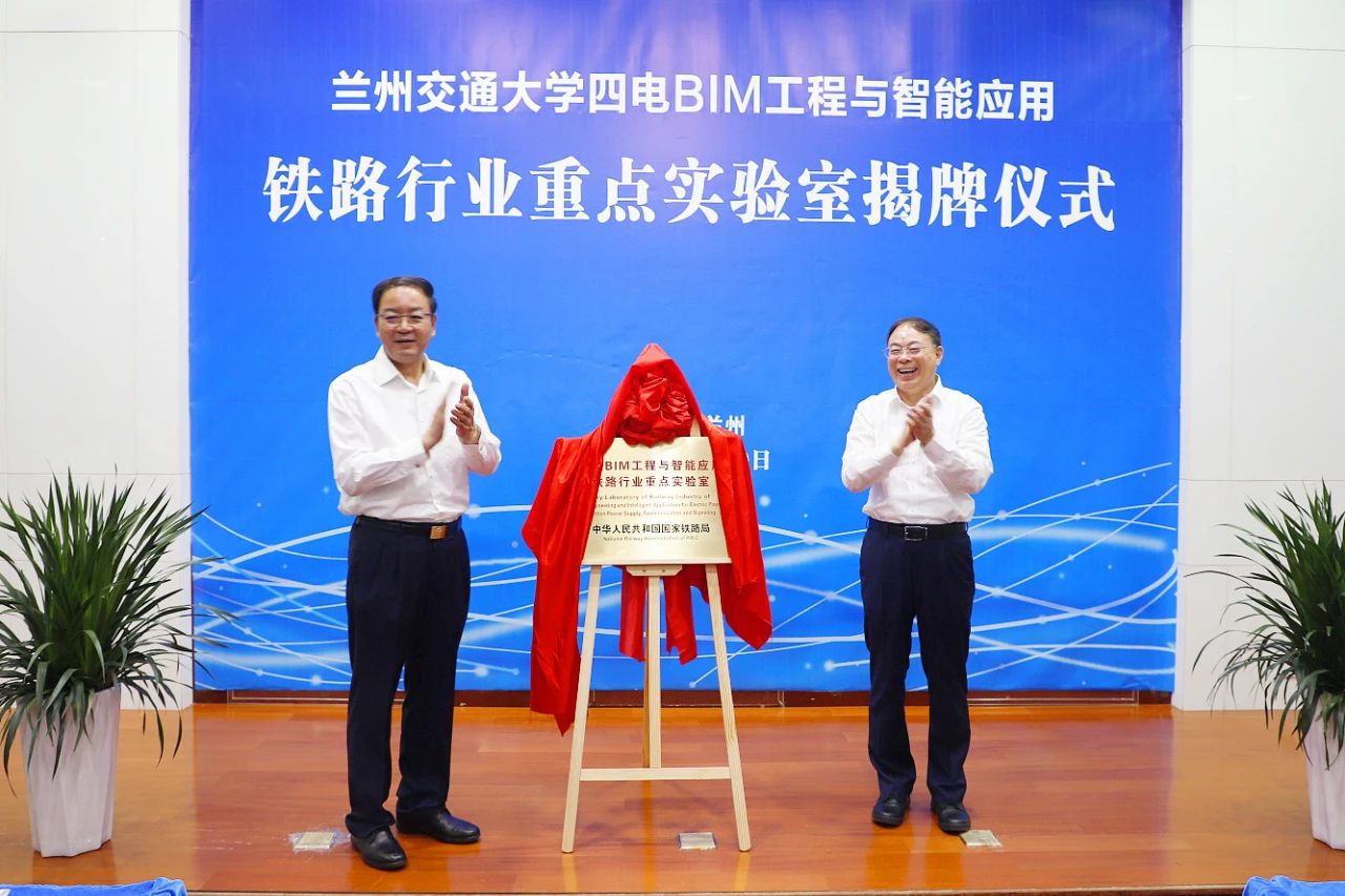 會(huì)見結(jié)束后,劉振芳和甘肅省人民政府副省長(zhǎng)張世珍赴蘭州交通大學(xué),共同為蘭州交通大學(xué)四電BIM工程與智能應(yīng)用鐵路行業(yè)重點(diǎn)實(shí)驗(yàn)室揭牌。國家鐵路局科技與法制司司長(zhǎng)王忠剛宣讀了重點(diǎn)實(shí)驗(yàn)室獲批認(rèn)定文件。甘肅省教育廳黨組書記、廳長(zhǎng)王海燕、副廳長(zhǎng)張國珍,蘭州交通大學(xué)黨委書記楊子江、校長(zhǎng)李引珍等出席揭牌儀式。