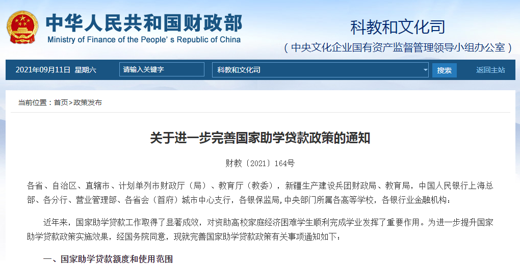 《關(guān)于進(jìn)一步完善國家助學(xué)貸款政策的通知》
