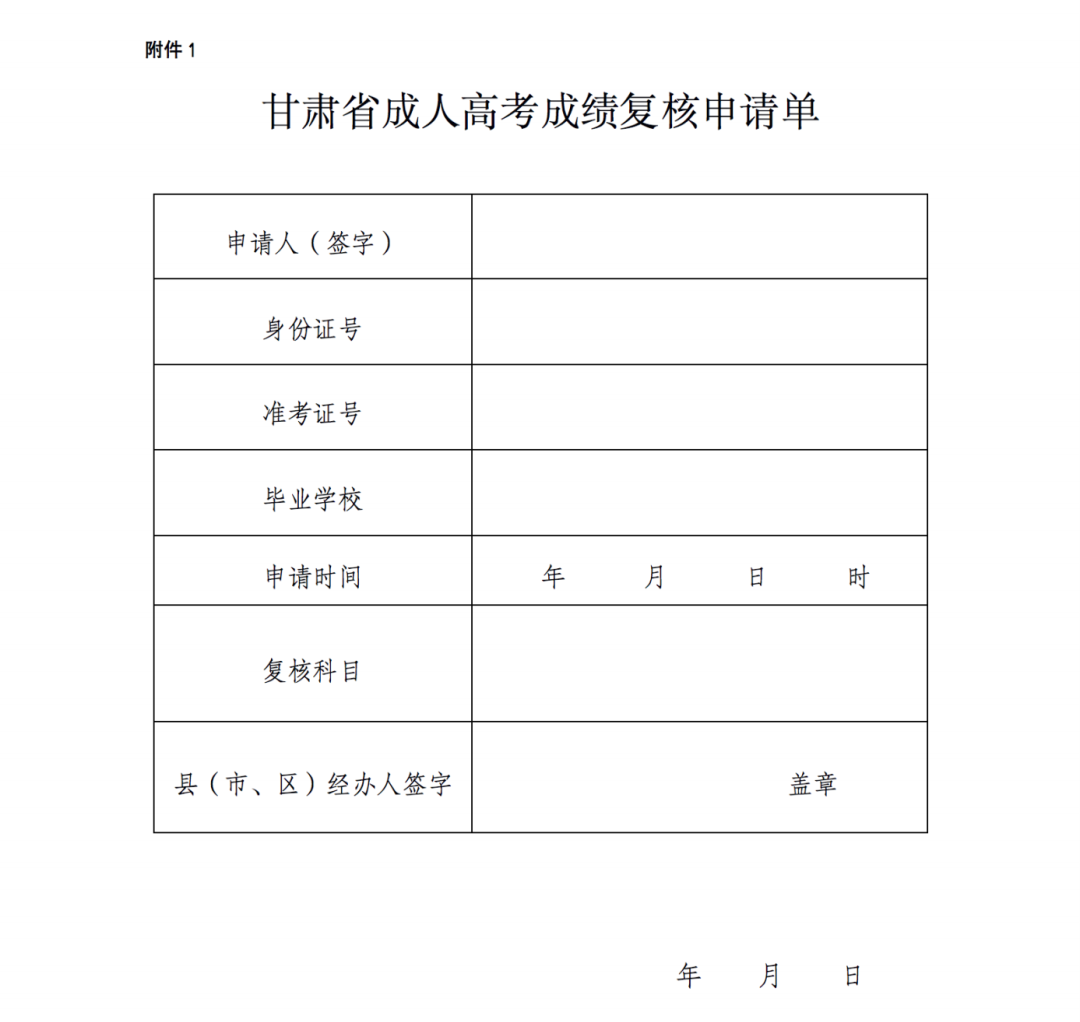 二、成績(jī)復(fù)核。考生若對(duì)成績(jī)有異議,可在成績(jī)公布之后5個(gè)工作日內(nèi),攜帶本人有效證件(身份證),到報(bào)名所在地(市、州)招生考試機(jī)構(gòu)填寫成人高考成績(jī)復(fù)核申請(qǐng)單(見附件1)提出成績(jī)復(fù)核申請(qǐng)。