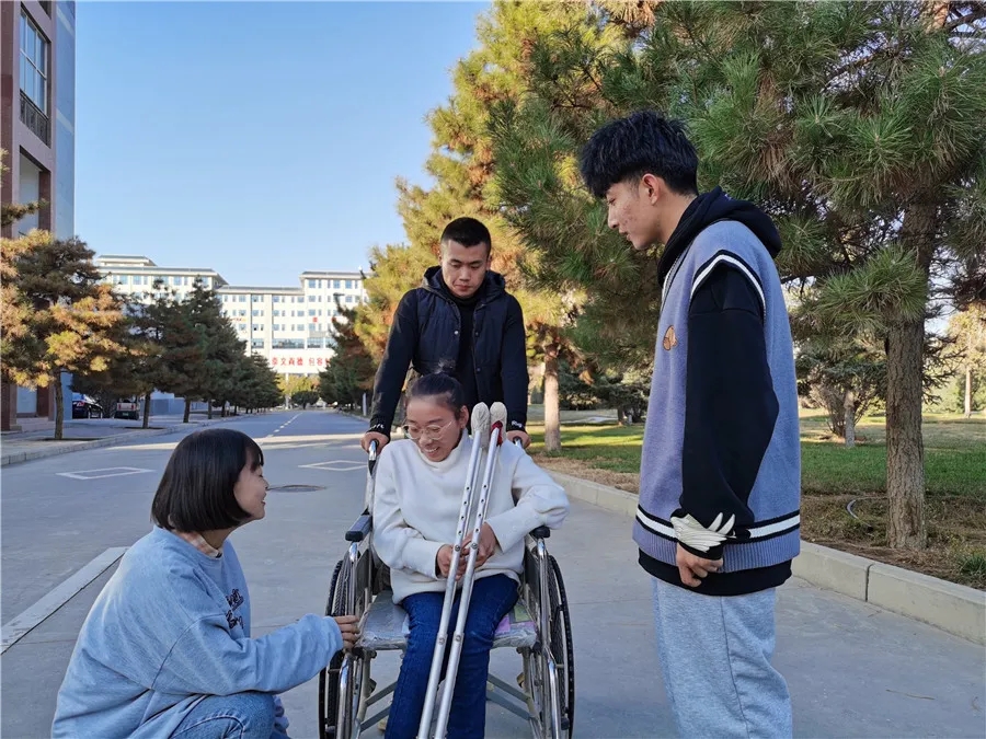 見到馮婷婷時(shí),她和母親正在宿舍里收拾物品,床鋪干凈整潔,物品擺放有序,環(huán)境溫馨舒適。馮婷婷說:“我家是建檔立卡貧困戶,學(xué)校給我減免了5000元的學(xué)費(fèi)和住宿費(fèi),協(xié)調(diào)出一套宿舍讓我們居住,學(xué)校還給母親安排了工作,不但減輕了家里的負(fù)擔(dān),還能照顧我的生活起居。學(xué)校對(duì)我的關(guān)心,我都銘記在心,一定要好好學(xué)習(xí),回報(bào)社會(huì)?!?/section>馮婷婷的家在慶陽市正寧縣,6歲時(shí)因病手術(shù)失敗導(dǎo)致下肢殘疾不能正常走路。哥哥在隴東學(xué)院上大學(xué),全家生活來源僅靠父親種地和打零工。今年新生報(bào)到入學(xué)后,馮婷婷的母親毅然走上了陪女兒上大學(xué)之路,母親的一路陪讀,堅(jiān)定著她讀書的步伐。上學(xué)本是一件很平凡、很普通的事,背后隱藏的卻是馮婷婷身殘志堅(jiān)、頑強(qiáng)的求學(xué)之路。馮婷婷入學(xué)后,武威職業(yè)學(xué)院主要負(fù)責(zé)同志親自到宿舍看望慰問,詳細(xì)了解基本情況,并叮囑老師們要為其提供力所能及的便利條件,確保解決學(xué)習(xí)、生活方面的后顧之憂,使其順利完成學(xué)業(yè)。為使馮婷婷能迅速適應(yīng)新的學(xué)習(xí)生活環(huán)境,學(xué)院根據(jù)實(shí)際情況將其宿舍調(diào)整至一樓,將班級(jí)教室從五樓調(diào)至一樓,并在該生班級(jí)授課的教學(xué)樓、實(shí)驗(yàn)樓、學(xué)生公寓樓等處修建了無障礙通道,在公寓內(nèi)安裝無障礙衛(wèi)生間,方便其學(xué)習(xí)生活。學(xué)院為馮婷婷申請(qǐng)了國家一等助學(xué)金及特困學(xué)生補(bǔ)助金共計(jì)7300元。徐錦鳳是武威職業(yè)學(xué)院2020級(jí)藥學(xué)7班的班主任。“我第一次接觸像馮婷婷這樣身體殘疾的學(xué)生,作為班主任,我力所能及地在學(xué)習(xí)和生活上給予她關(guān)心和幫助,也鼓勵(lì)同學(xué)們對(duì)她多幫助多關(guān)懷,讓她能夠融入到班集體中,快樂的學(xué)習(xí)生活。”徐錦鳳告訴記者,今后,他們將繼續(xù)關(guān)注關(guān)心馮婷婷,及時(shí)幫助她解決一些學(xué)習(xí)和生活中的困難,讓她順利完成學(xué)業(yè)。相信,有黨和國家的好政策,有武威職業(yè)學(xué)院這個(gè)溫暖的大家庭,馮婷婷必將能夠快樂地學(xué)習(xí)生活,圓滿完成學(xué)業(yè)。