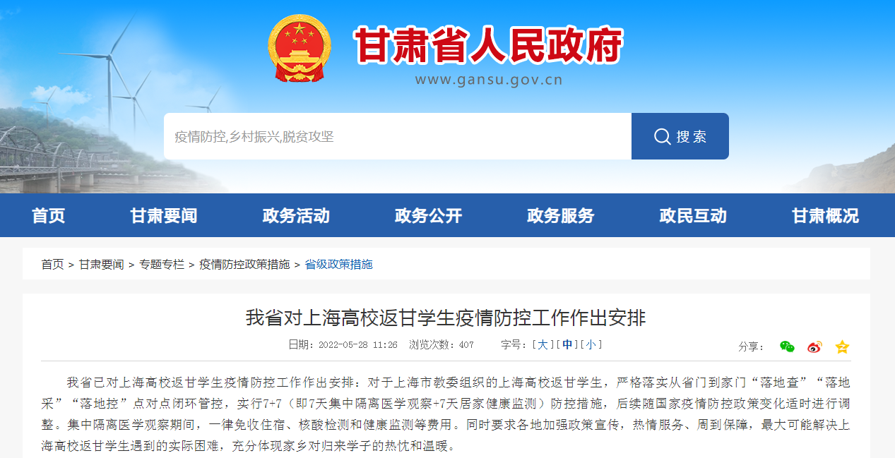 甘肅省對(duì)上海高校返甘學(xué)生疫情防控工作作出安排