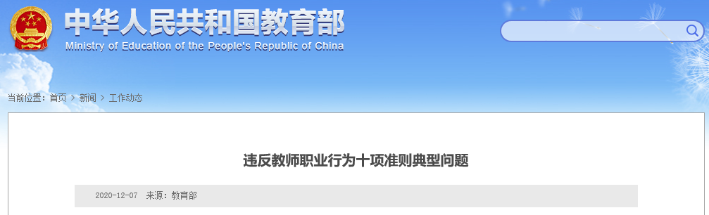 日前,教育部對8起違反教師職業(yè)行為十項準則典型問題進行公開曝光。這8起典型問題是: