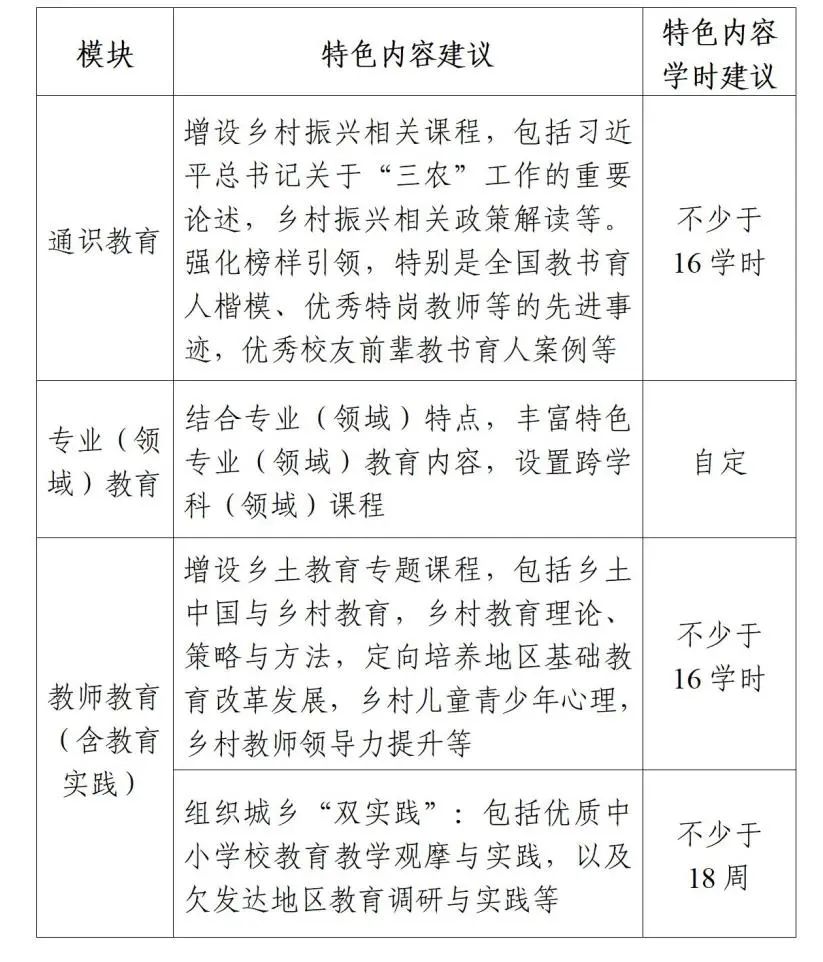 在合理設(shè)置通識教育、專業(yè)(領(lǐng)域)教育、教師教育(含教育實踐)課程結(jié)構(gòu)的基礎(chǔ)上,圍繞培養(yǎng)目標和畢業(yè)要求,結(jié)合中西部欠發(fā)達地區(qū)教育實際,重點體現(xiàn)以下特色課程內(nèi)容。