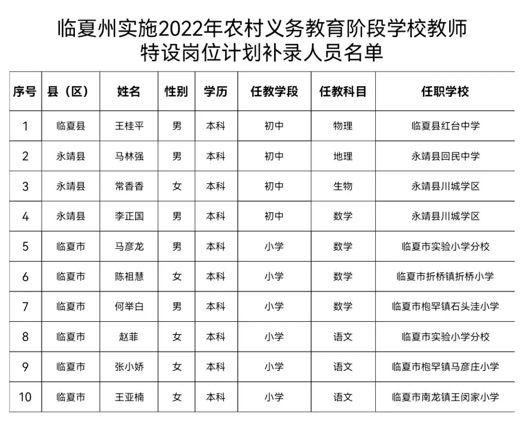 按照《甘肅省教育廳?甘肅省人力資源和社會保障廳?甘肅省財政廳關(guān)于印發(fā)甘肅省2022年農(nóng)村義務(wù)教育階段學(xué)校教師特設(shè)崗位計(jì)劃實(shí)施方案的通知》(甘教師〔2022〕2號)要求,全省2022年農(nóng)村義務(wù)教育階段學(xué)校教師特設(shè)崗位計(jì)劃補(bǔ)錄工作已經(jīng)完成。現(xiàn)對天水等地擬補(bǔ)錄人員(37名)進(jìn)行公示,時間為2022年10月18日至10月24日(五個工作日)。公示期間,如有異議,請聯(lián)系省教育廳教師工作處實(shí)名反映。