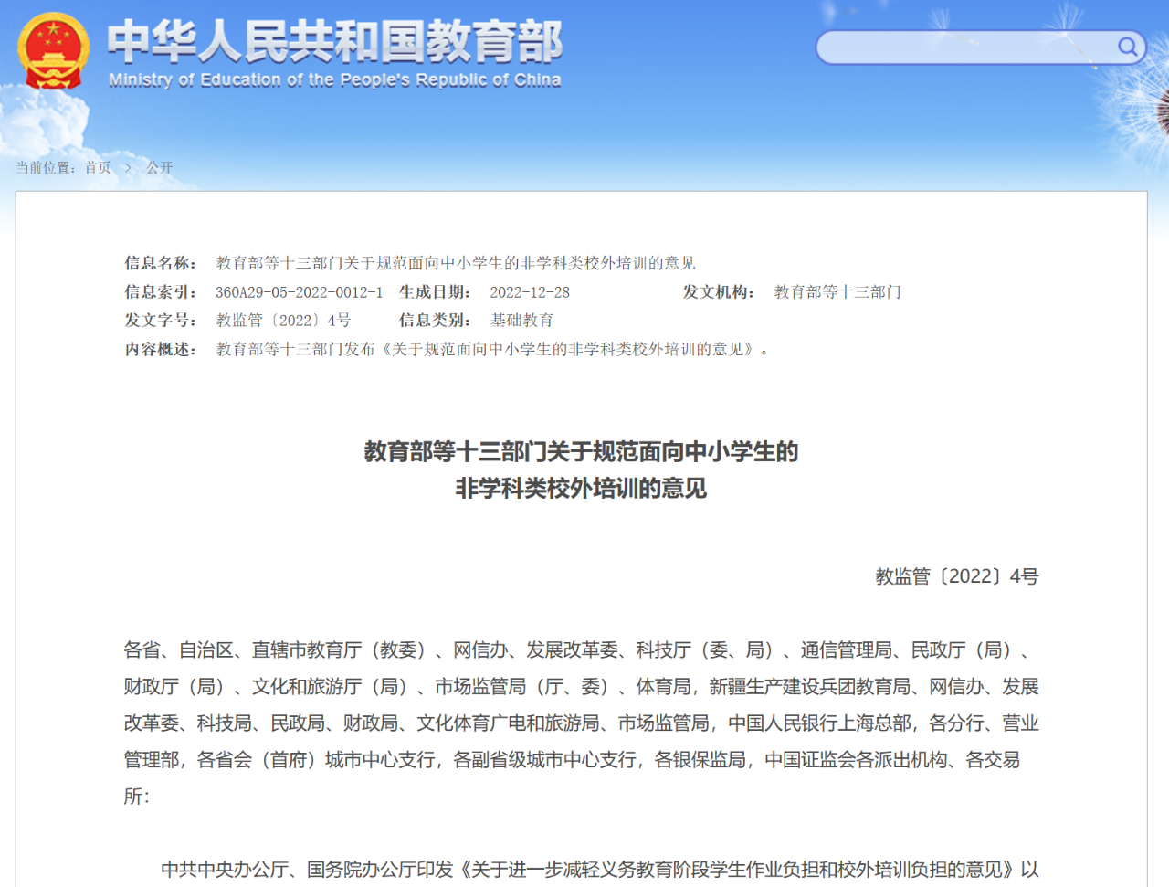 四是廣泛征求意見和建議。在起草過程中及《意見》征求意見稿形成后,廣泛征求了中央相關部門、地方教育及相關部門、培訓機構代表意見建議,對《意見》不斷進行修改完善。