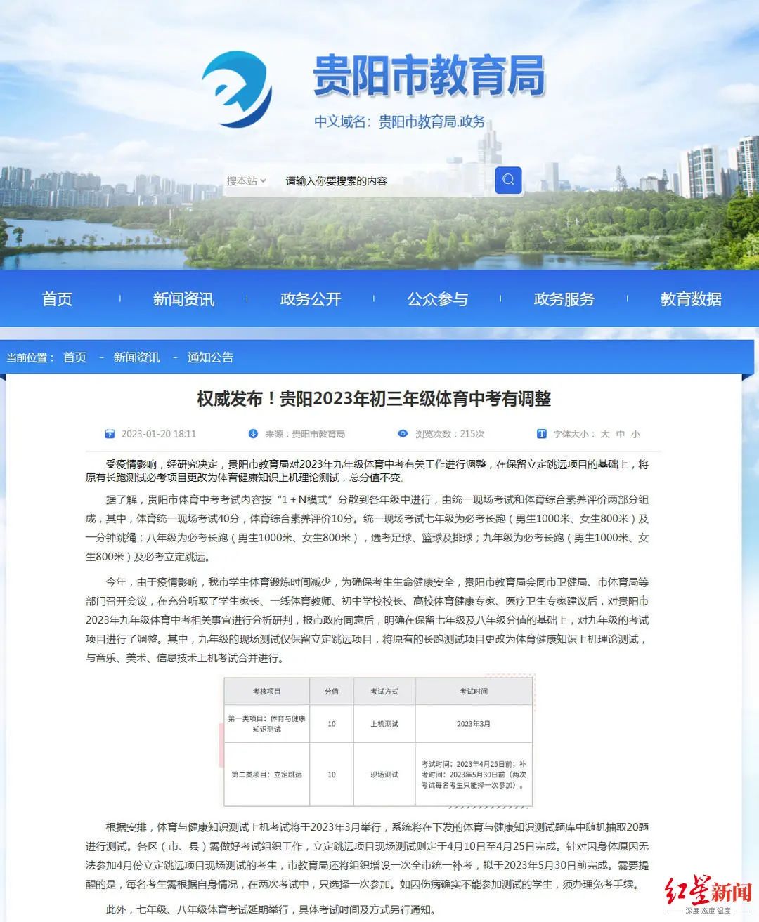 記者了解到,近日,貴州省貴陽、遵義、六盤水、黔南等多個市州為此調(diào)整了體育中考項目,均取消了男生1000米、女生800米跑項目。有教育部門還要求,學(xué)校要引導(dǎo)學(xué)生對體育中考項目進行合理、科學(xué)的選擇和專項訓(xùn)練,避免過早開展中長跑等高強度、高負荷的運動項目。1月20日,貴陽市教育局發(fā)布調(diào)整體育中考的消息